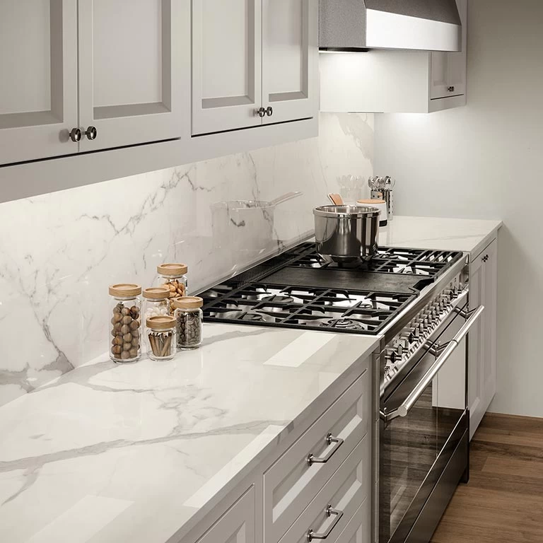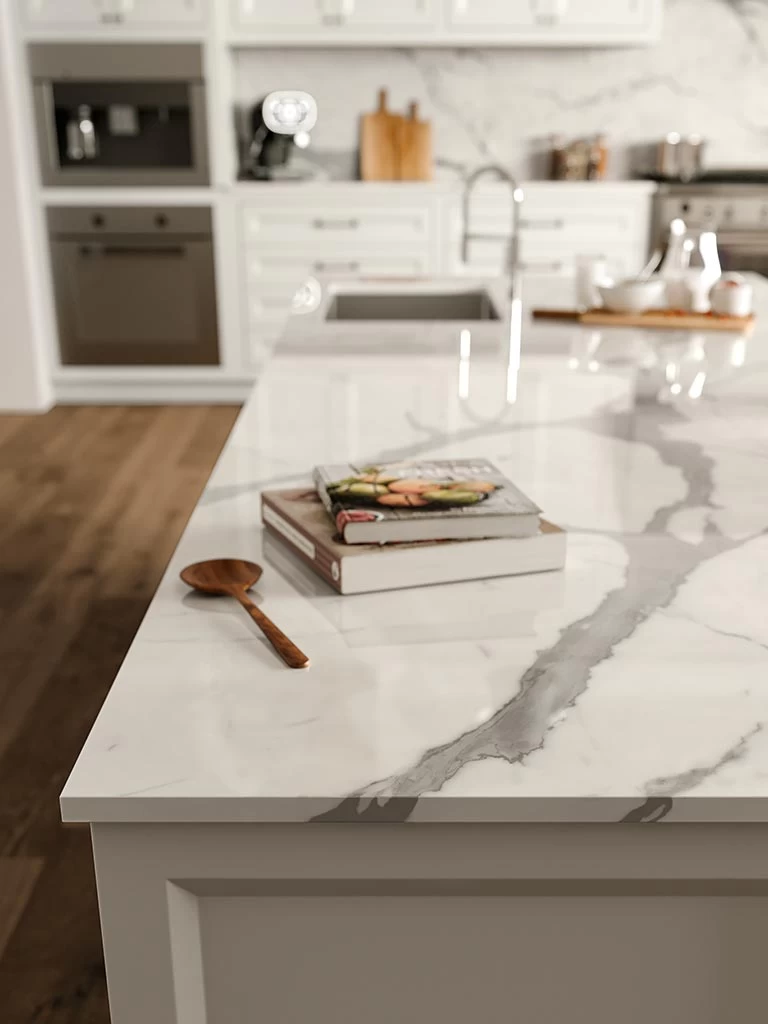 Zamislite samo – svetlucava površina mermernog efekta Statuario Supemo koja reflektuje svetlost, stvarajući prostran i osvetljen ambijent. Idealno mesto za kulinarske kreacije i okupljanje porodice i prijatelja.