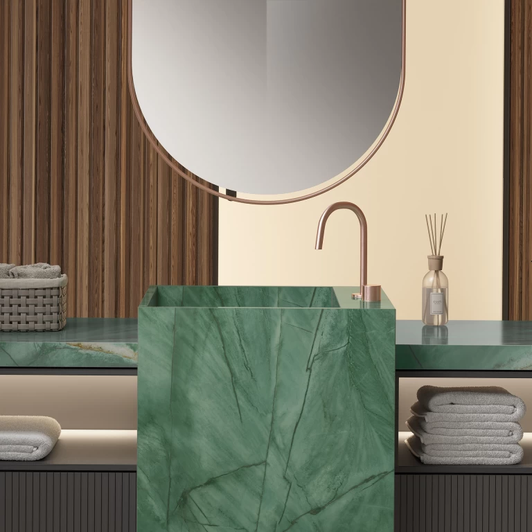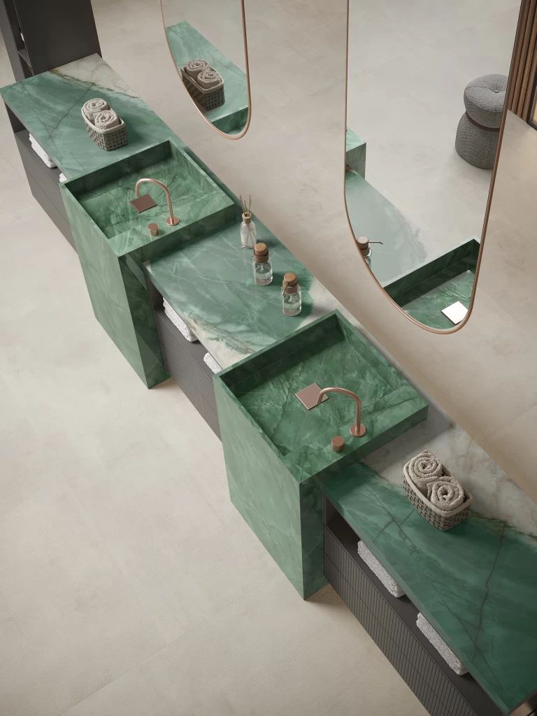 U saradnji sa renomiranim italijanskim brendom Atlas Concorde – Atlas Plan, u našu ponudu smo uvrstili vrhunsku Exotic Green porcelansku ploču koja spaja besprekornu estetiku, izuzetnu izdržljivost i neograničene mogućnosti primene u savremenom enterijeru.