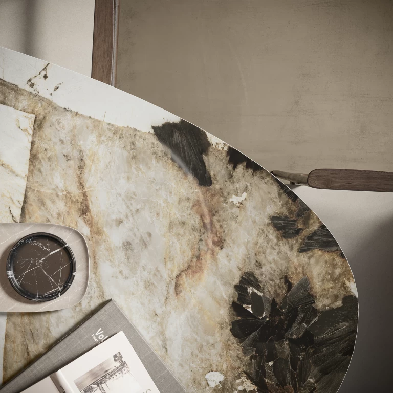 Sa aplikacijom tehnike Bookmatch (efekat otvorene knjige), stvorite fascinantne ornamentalne grafike koje dodatno poboljšavaju dekorativni karakter dezena Desert Soul.